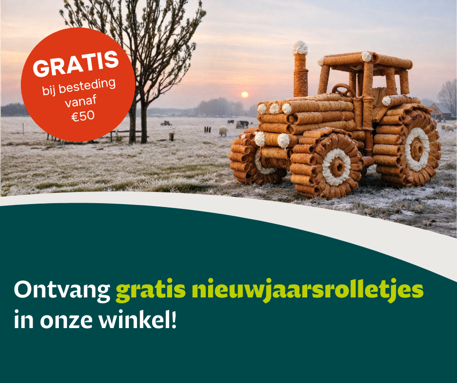 Wij starten 2026 graag samen met u. Daarom ontvangt u bij besteding vanaf €50,- een gratis doos heerlijke Vechters nieuwjaarsrolletjes in onze winkel. Namens het hele team wensen wij u een gelukkig, gezond en succesvol 2026. Kom langs en vier het nieuwe jaar met een smakelijke traktatie! OP = OP