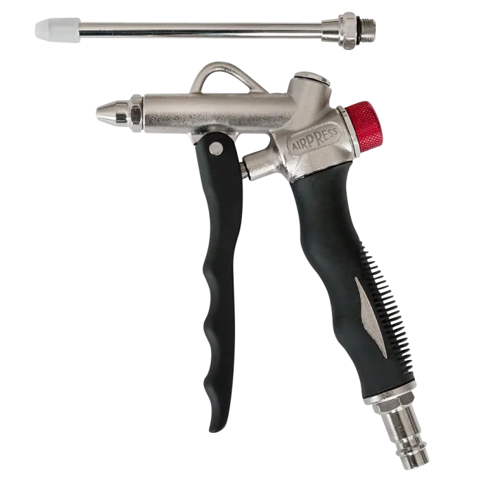 Met een blaaspistool kan u snel en eenvoudig uw werkbank schoonblazen. Daarnaast kan deze uitstekend gebruikt worden voor het vuilvrij maken van machines. Dit model is uniek doordat u met een draaiknop eenvoudig de druk kan regelen.