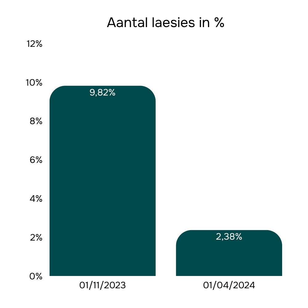 Op het eerste bedrijf nam het aantal koeien met laesies in een periode van zeven maanden met 42% af. Daarbij viel niet alleen de daling in aantallen op, maar ook de ernst van de problemen: laesies waren minder pijnlijk en koeien bewogen zichtbaar beter. Op het tweede bedrijf waren de resultaten nog opvallender. Binnen vijf maanden werd een reductie van 76% in het aantal laesies gerealiseerd. Daarnaast vertoonden de nog aanwezige laesies een gunstiger verloop: ze droogden sneller in en veroorzaakten minder ongemak, waardoor de mobiliteit van de koeien duidelijk verbeterde. Deze praktijkresultaten onderstrepen dat plantextracten niet alleen het aantal klauwproblemen kunnen verminderen, maar ook de ernst ervan positief beïnvloeden. Dat vertaalt zich direct naar beter dierwelzijn en een koppel die makkelijker beweegt.