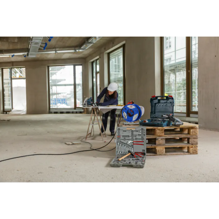 De Brennenstuhl Garant IP44 kabelhaspel heeft extra lengte, dankzij de 40 meter lange kabel. De kabel, type H07RN-F 3G1,5, is een ideaal model voor industrieel gebruik en gebruik op bouwplaatsen. De haspel is voorzien van 3 spatwaterdichte veiligheidsstopcontacten. Deze zijn voorzien van zelfsluitende klepdeksels en daardoor ook geschikt voor buitengebruik.