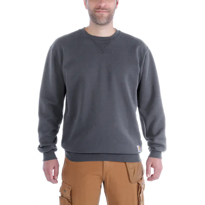 Deze grijze Carhartt sweater is voorzien van een ronde kraag. Dit model, de K124, heeft een ruimvallende en comfortabele pasvorm. De sweater bestaat voor 50% uit katoen en de andere 50% is polyester.
