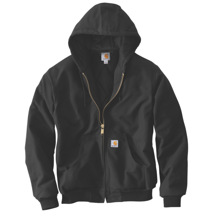 Winddichte en gevoerde winterjas van Carhartt. Dit model, de 106673, is een met flanel gevoerde jas waardoor u ook in zeer koude periodes comfortabel buiten aan het werk kunt. Deze zwarte winterjas bevat meerdere zakken en is verkrijgbaar in de maten S t/m XXL.