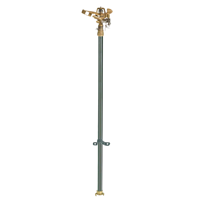 De ¾’’ sproeier draait u op de Suevia ¾’’ verlengbuis, aan de onderzijde bevestigt u de GEKA koppeling. Met de buiszadels kunt u de buizen aan de voor- en achtergevel van de stal bevestigen. De sproeier heeft een maximaal bereik van ca. 14 meter.