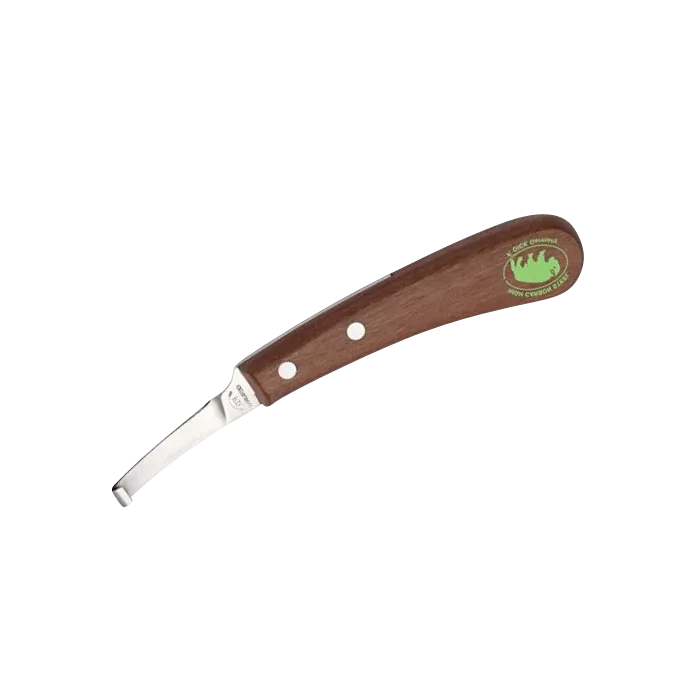 Dit Dick Bison hoefmes is een professioneel hoefmes met een super kwaliteit. Het hoefmes is linkssnijdend en gemaakt van extra hard, hooggelegeerd staal. Het heft is gemaakt van Kotibe hout. Het lemmet (snijgedeelte) is extra scherp, waardoor dit type hoefmes ook zeer geschikt is voor harde klauwen.