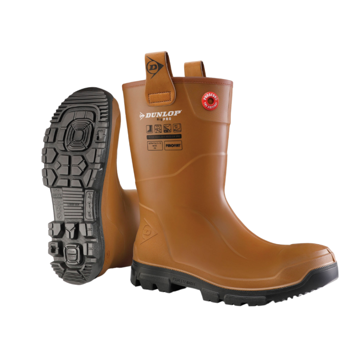 De RigPRO laarzen van Dunlop zijn bruine laarzen die wat lager zijn dan de andere rubberen laarzen in het assortiment. Deze laarzen zijn voorzien van een stalen neus en hebben een src loopzool. De laarzen zijn verkrijgbaar in de maten 39 t/m 48.