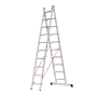 Bent u op zoek naar een 2-delige ladder? De Euroline reformladder kunt u uitschuiven, maar ook vormen tot een dubbele ladder. Dit model is 2-delig en heeft 2x10 treden. De voet is recht en voorzien van een stevigheidsbalk. De totale uitgeschoven lengte van de ladder bedraagt 5,25 meter. Dankzij het gebruik van aluminium is de bouwladder licht van gewicht. Ook verkrijgbaar in 3-delig model.