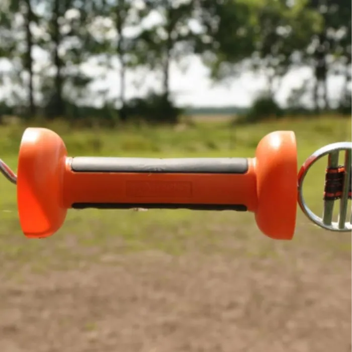 Robuuste oranje poortgreep met een zwart rubberen profiel, geschikt voor lint tot 40mm. Geeft u een optimale grip, ook tijdens nat weer!