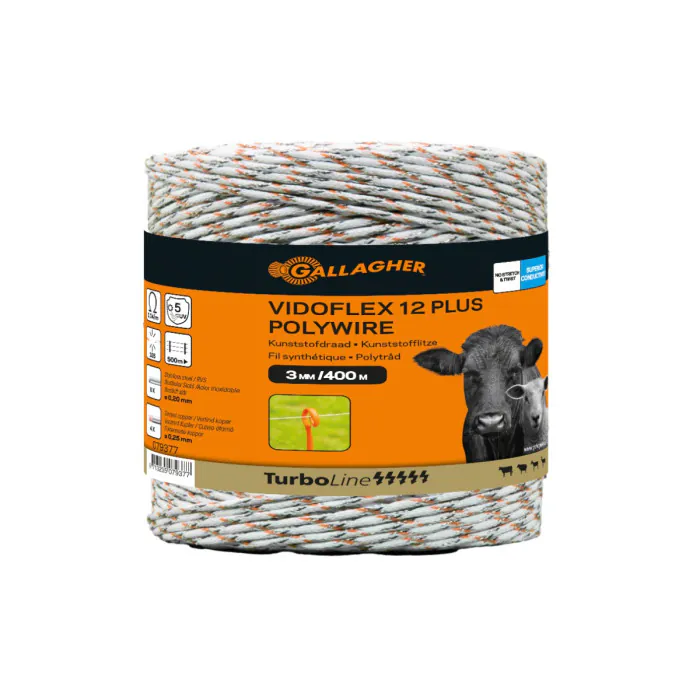 Wilt u een lange stuk afrasteren met het allerbeste schrikdraad? Dan is dit witte schrikdraad Vidoflex 12 van Gallagher de juiste keuze! Dit type schrikdraad is geschikt voor lange en verplaatsbare afrasteringen langer dan 500 meter. Het draad is wit van kleur en in de verpakking zit 400 meter.