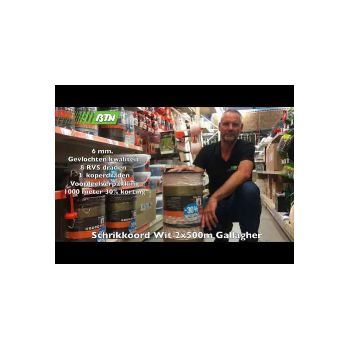Wit Turboline cord Duopack van Gallagher in een voordelige Duopack! Het schrikkoord is uitermate geschikt voor permanente paarden- en veeafrasteringen, langer dan 500 meter. Sterk, geweven kunstofkoord met 8RVS draden en 3 koperdraden. Ook geschikt voor het buitenhouden van wild. In de verpakking zit 2 x 500 meter.