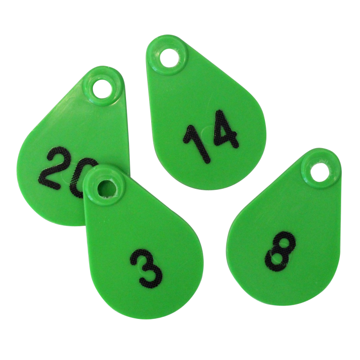 Groene halsnummers of neknummers bedrukt, voor een duidelijke herkenning van uw schapen en/of geiten. Deze neknummer zijn verkrijgbaar in diverse nummer ranges.