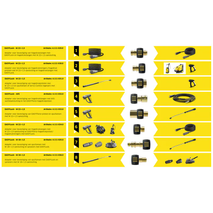 Bekijk hier alle koppelingen, tules & accessoires voor uw Kärcher reiniger!