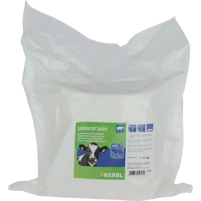 Maakt u gebruik van UdderoClean vochtig uierpapier met 800 vellen? Dan kunt u deze Kerbl navulling gebruiken, wanneer uw emmer leeg is. De vellen hebben een afmeting van 20 x 20 centimeter en zijn gemaakt van 100% verse celstof en is ook nog eens biologisch afbreekbaar. In deze navulverpakking zitten 800 vellen.