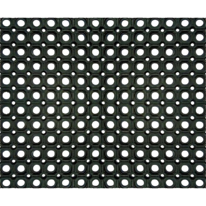 Oerdegelijke en sterke rubberen ringmatten met open bodem. Deze rubberen mat is ontworpen voor drukbezochte plekken en ingangen. De matten zijn 23 mm dik en een rekweerstand van 300%. De roostermatten hebben een neutrale zwarte kleur en zijn leverbaar in meerdere afmetingen en met bijbehorend koppelstukken. Ideaal te gebruiken als antislip-mat, bij vorst, als geluidsdempende mat, als voetveegmat of voor het schoon houden van de ingang. De afmeting is 80 x 120. Deze matten zijn eenvoudig aan elkaar te koppelen met ons rubberen verbindingsstuk.
