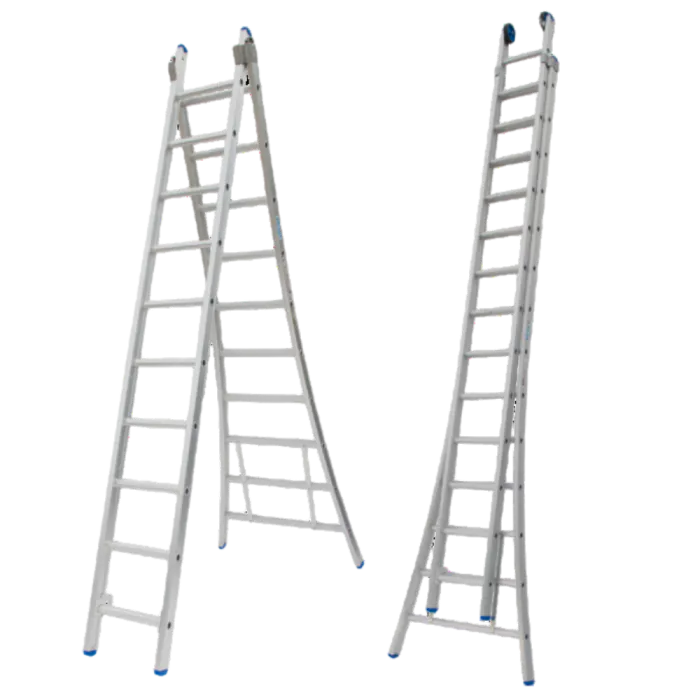Wilt u een tweedelige bouwladder kopen? Bekijk dan eens de Solide reformladder 2-delig. Dit model is een professionele ladder en is verkrijgbaar in verschillende hoogtes. Dankzij het gebruik van een uitstekende kwaliteit aluminium, is het model licht van gewicht. De gebogen voet zorgt voor stabiliteit. Naast uitschuiven kunt u dit model ook omvormen tot een dubbele trap.