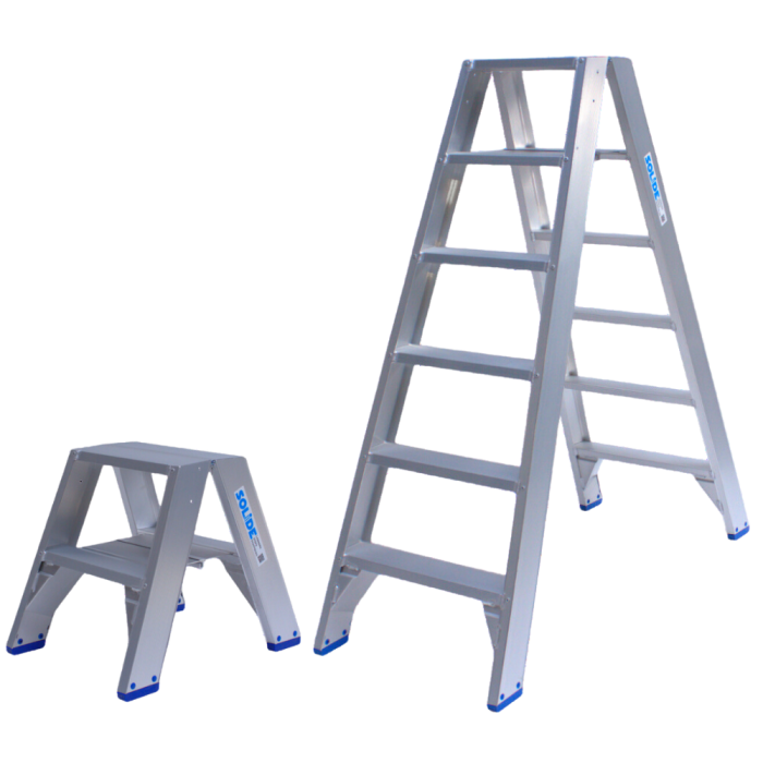 De professionele dubbele industrietrap van Solide, model DT, is zoals de naam al zegt, voorzien van twee trapgedeeltes. De aluminium trap, ook wel trapladder genoemd, heeft een extra polyester coating en is verkrijgbaar in verschillende hoogtes. De tredes hebben een diepte van 10 cm. Wordt geleverd zonder veiligheidsbeugel, deze kunt u apart meebestellen.