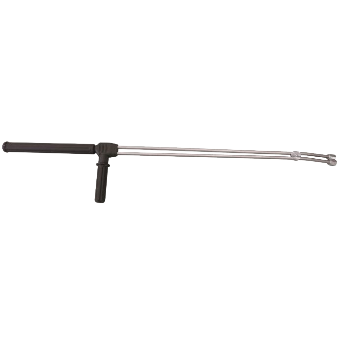 Dubbele spuitlans voor hogedrukreinigers. De lans is gemaakt van RVS, is licht en handzaam in gebruik en heeft een lengte van 105cm. De aansluiting aan de slangzijde is 1/4 buitendraad en de uitgangzijde is 1/4 binnendraad.