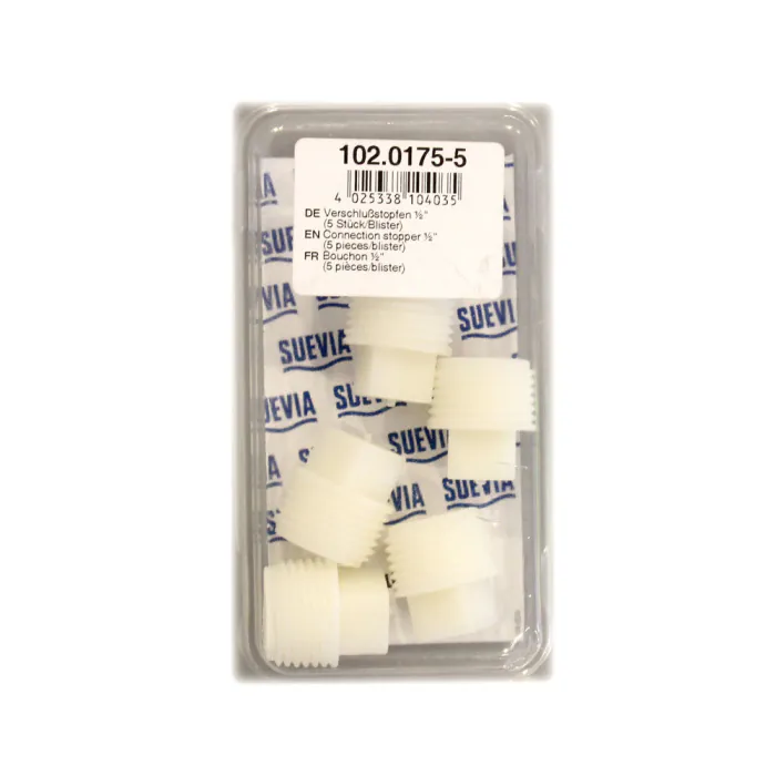 Suevia afsluitdop, ook wel antivorststop genoemd, voor het veilig afsluiten van Suevia drinkbakken. In de verpakking zitten 5 stuks en de stop is verkrijgbaar in de maten: 1/2" en 3/4".