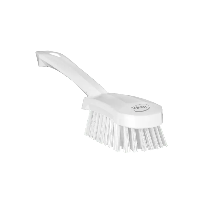 Professionele afwasborstel van Vikan welke voorzien is van een korte steel en harde haren. Zeer geschikt om te gebruiken bij het reinigen van hardnekkig vuil op een gladde oppervlakte. U kunt de borstel eenvoudig vasthouden aan de steel of borstelkop. Verkrijgbaar met een witte kleur.