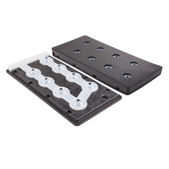 De mat wordt geplaatst in de terugloopgang van uw melkstal of melkrobot. De klauwmat bestaat uit drie delen: de ondermat, de sproeimat en de bovenmat. Daarnaast bestaat het systeem uit een Mixatron pomp (doseerpomp). De ondermat wordt permanent gemonteerd op de ondervloer (dichte vloer of roostervloer). De sproeimat wordt aangesloten op de pomp. De bovenmat komt bovenop de sproeimat te liggen. De set wordt compleet geleverd inclusief matten, doseerpomp en bevestigingsmateriaal.