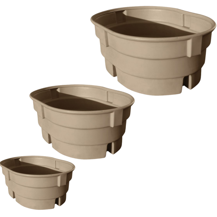 De Vital’O weidedrinkbakken zijn gemaakt van een uitstekende kwaliteit voor een gunstige prijs. De drinkbakken zijn verkrijgbaar in verschillende groottes en hebben een licht beige kleur. Gemaakt van polyethyleen voor een lange levensduur en een goede UV bescherming.